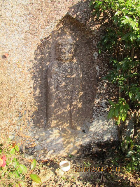その際の兵火で石の表面が焼けて崩れ、今は光背部分だけが残っている。 |