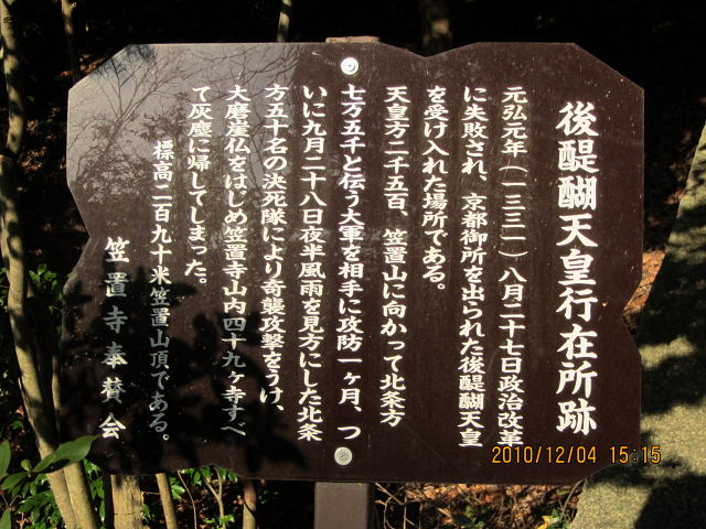 笠置山に来て寺を行在所とし、寺を中心に笠置城とし、近在の武士農民を集めて