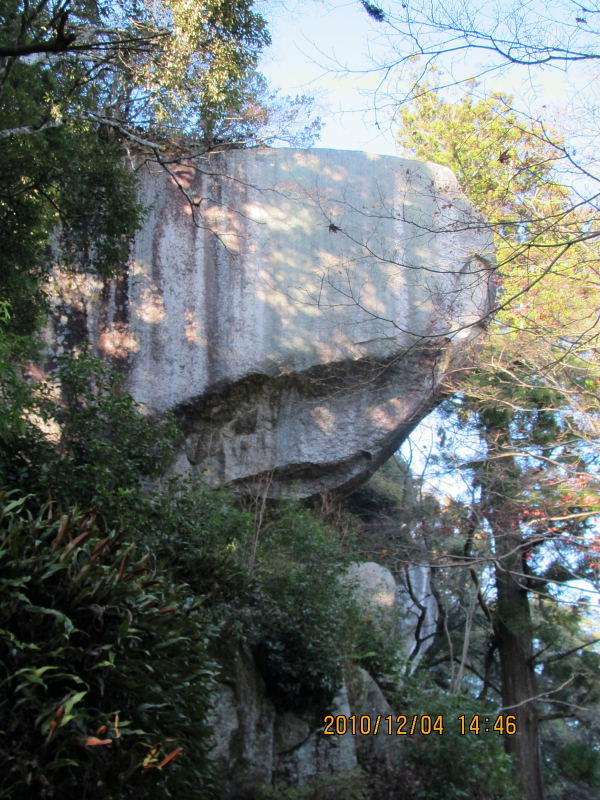 頭上に覆いかぶさるように突き出た高さ12m、幅9mの巨石が