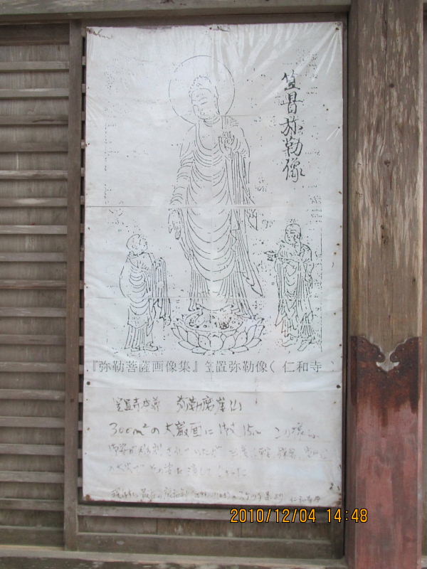 弥勒石の前の正月堂の屋内に、デジタルで復元された画像が掲示されている