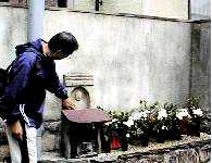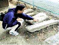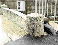 再び免除川を西に進み、JA交野市の所で左折、バス通り道を少し進み、右手の細い道を400mほど直進すると、百々川(どどがわ)に架かる市場橋に出る。この橋の上側に洗濯場があったそうです。その洗場の踏み石であったものが、住吉神社の木立の下に保存されているという。