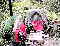 この地蔵様は足痛を治してくださる。江戸時代のもの。