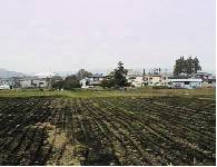 市役所から小学校への道路に沿って、用水路が流れており、この両側は土地が少し高くなっている。石仏のある辺りもなだらかな台地になっていて、「向井山」という地名が残っている。
