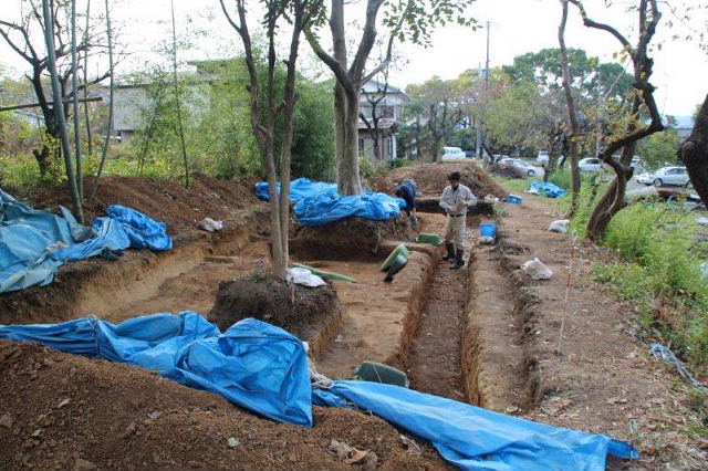 ![]() 本郭内で弥生時代中期の石器を製作していた竪穴住居2棟が確認され、 交野市の弥生時代史を考える上でも重要な遺構が地下に保存されている。 |