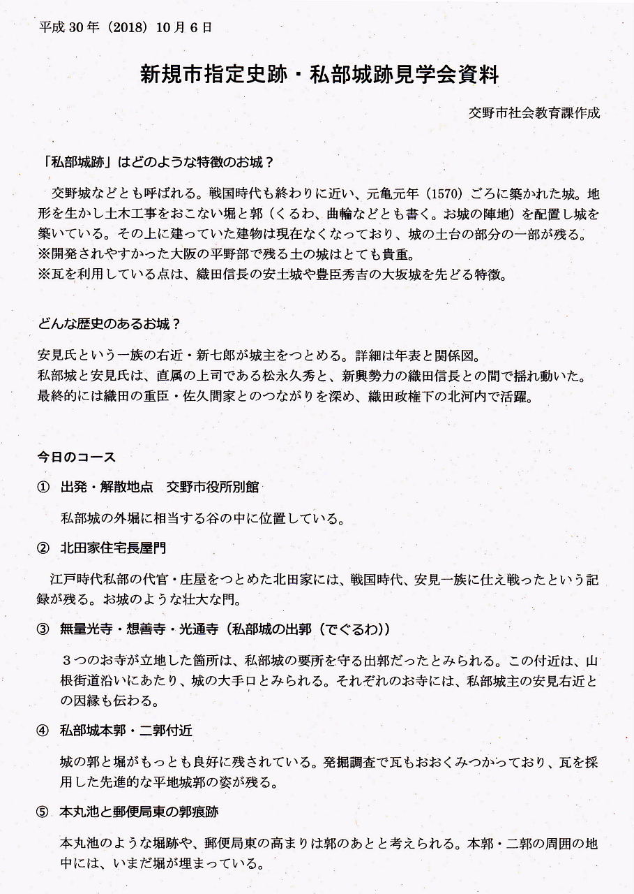| 10月6日、新規指定史跡記念 私部城跡見学会が開催されました! |