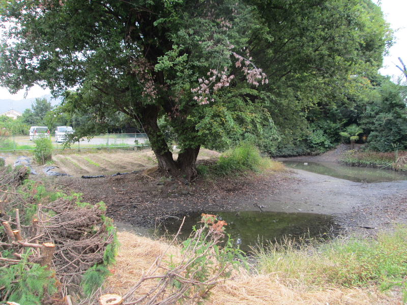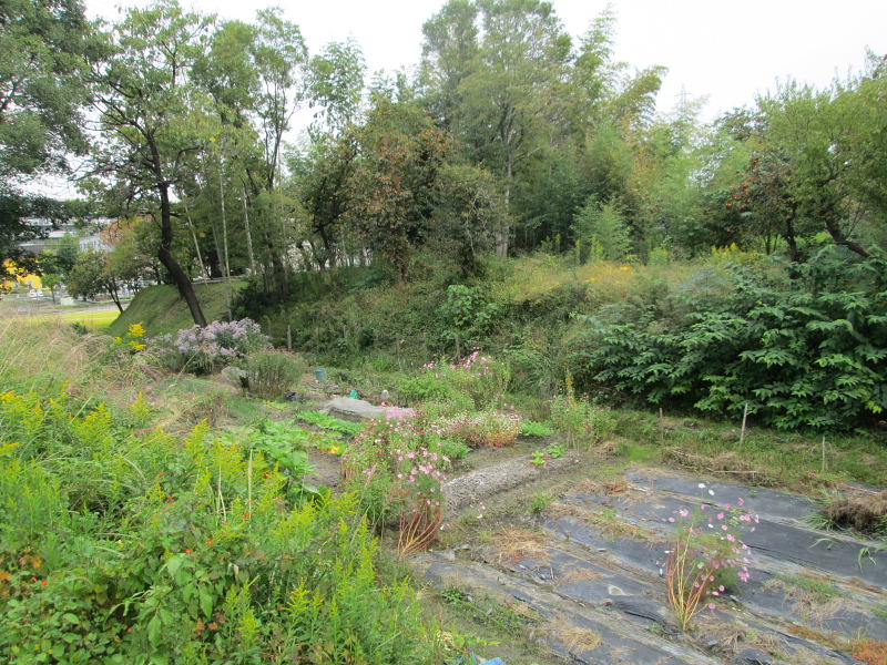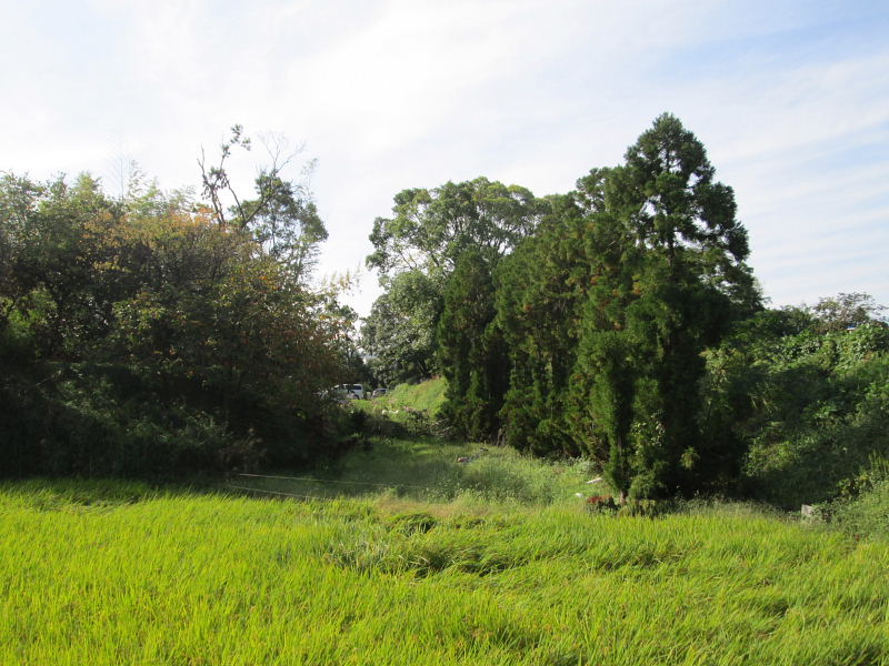 ![]() 右の台地が二郭、左側の台地が本郭 中央に切通 |