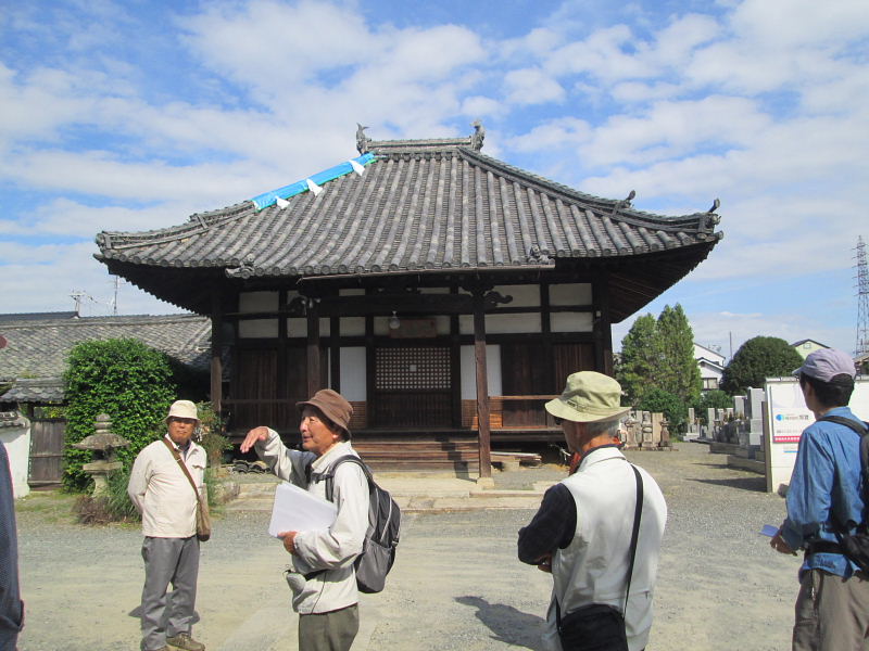 | 日時 : 2018年10月13日(土) 午前9時 京阪・交野市駅西口ロータリー前集合 参加者28名(会員22名) 行程 : 私部城跡〜光通寺〜無量光寺〜想善寺 11時10分頃解散 |