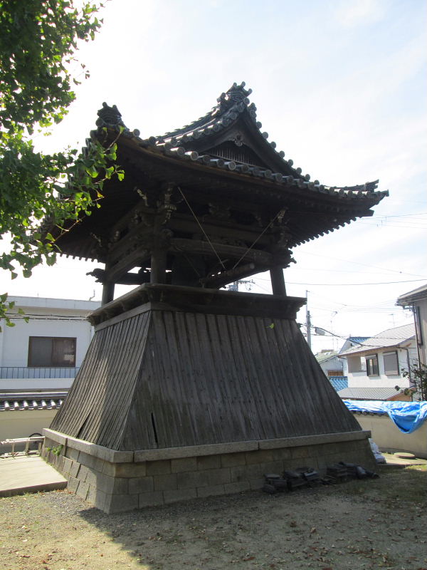 無量光寺の梵鐘 無量光寺には享保15年(1730)の梵鐘があり、ここに寺の初め頃から以後2百数十年もの歴史がきざまれています。 そのなかに,天正年間の信長の本願寺攻めの記載があります。「無量光寺、覚心はこの戦いの防禦に貢献し、結果和解となったが、当時私部に城を築き信長に属して戦っていた右近はこの覚心の所為を怒つて殺そうとした。これを人づてに知つた覚心は20年余り逃亡した。 この梵鐘は戦中の供出を免れ現存している。 |