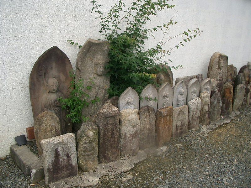 | 光通寺 宗派 臨済宗 本尊 聖観音菩薩立像 ヒノキ材 像高71,5cm 鎌倉時代の作 創建は室町時代の始め頃 京都東福寺末 開祖は「交野郷土史かるた」にあるように別峰和尚で後村上天皇に寵愛された方です。後村上天皇の勅願寺という説もあります。実際には別峰和尚はこの寺に来て暫くして亡くなられたようで、開創者は赤松氏といわれている。室町時代から戦国時代にかけて朝廷にお茶を献ずるなど力を持った寺であったようです。又この寺の石垣のなかに「石垣地蔵」とよばれる2体の石仏がみられます。石仏はかなり風化していて分かりづらいのですが、光線の具合で浮き上がって見えることがあるそうです。 この寺は戦国期に到って私部城の敷地に取り込まれ、城の外側に突き出して築かれる出郭として利用されたと考えられています。この頃の出来事を指すと考えられる記述が、光通寺の寛文四年(1664)の棟札に登場します。 すなわち、「信長配下の安見右近は、義も道もなく法をそこない、光通寺の壁を破り仏閣を地に堕とした。」そして右近が自刃に追い込まれたことにつき、「罰が下った、後世の人の戒めとなる」などと強い調子で非難しています。破壊を受けた光通寺ですが、右近の死から4年後、朝廷女官の記した日記に。例年通り朝廷へのお茶の献上の記事が見られることから、勅願寺としての位置は保たれていたと考えられます。朝廷との深いつながりをもつ光通寺にとって、私部城の敷地への接収は、右近による寺の破壊の記億として近世にいたってもなお忘却されず、これを棟札に書き残す事で,後世への思いをつたえています。(棟札の項、交野市教育委員会の記述)(注 勅願寺とは天皇の命令で建てた寺) |
