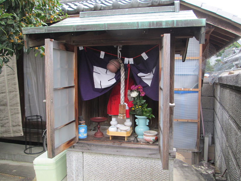 | 想善寺 宗派は西山浄土宗 本尊 阿弥陀如来坐像 ヒノキの寄木作り 江戸時代の作 天正年間(1573〜1591)、惣善上人が一宇の堂を建て念仏生活をしたのが始まりといわれ、後にそれを想善寺と称した。その後寛政2年(1790)遍空上人時代、当地の領主畠山義紀公が大壇越(スポンサー)となり寛政5年秋に現在の伽藍に再建された。本堂の傍に地蔵堂があり堂内には中央に一木彫りの延命地蔵を安置し、その左右に仏高12cmの千体仏を祀っている。当地方では、子授け、安産の帯受け及び子供守りの地蔵として参詣する人が多い。 昭和44年の大雨で本堂の一部が崩れ落ちるという事件があった。多くの人の尽力で再建は出来たが、この時はからずも、天上裏から位牌と古文書が出てきた。この古文書はもと私部上河原にあった光蓮寺のものであったことが分かりました。 同時にこの寺は元禄時代より古い貞享年間(1684〜1685)には上河原にあったことが明らかになりました。この文書はその後私部住吉神社の神宮寺、現光寺に移り、明治の神仏分離で想善寺に移ってきたと考えられます。 (交野市教育委員会編、交野の神社と寺院より) |