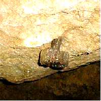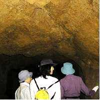 懐中電灯を頼りに 洞穴内を探検 奥行き30mはあろうか |