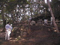 | 竹を切り、花をいける竹筒を作る | 王の墓の付近の落ち葉も 綺麗に清掃された |