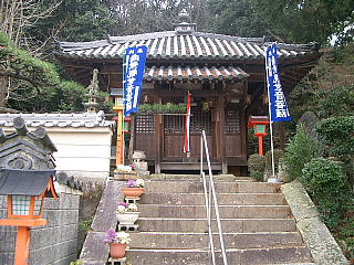 千手寺は亀山上皇 安在所千手寺(せんじゅじ)は今は一小庵ですが、亀山上皇が病気の時、獅子窟寺の薬師仏に祈願され、ここを安在所(あんざいしょ)として千手観音をまつって寺とされました。 左の写真は千手寺、直ぐ北へと続く付近の露地を通って京阪電車・河内森駅へと出る。 |
