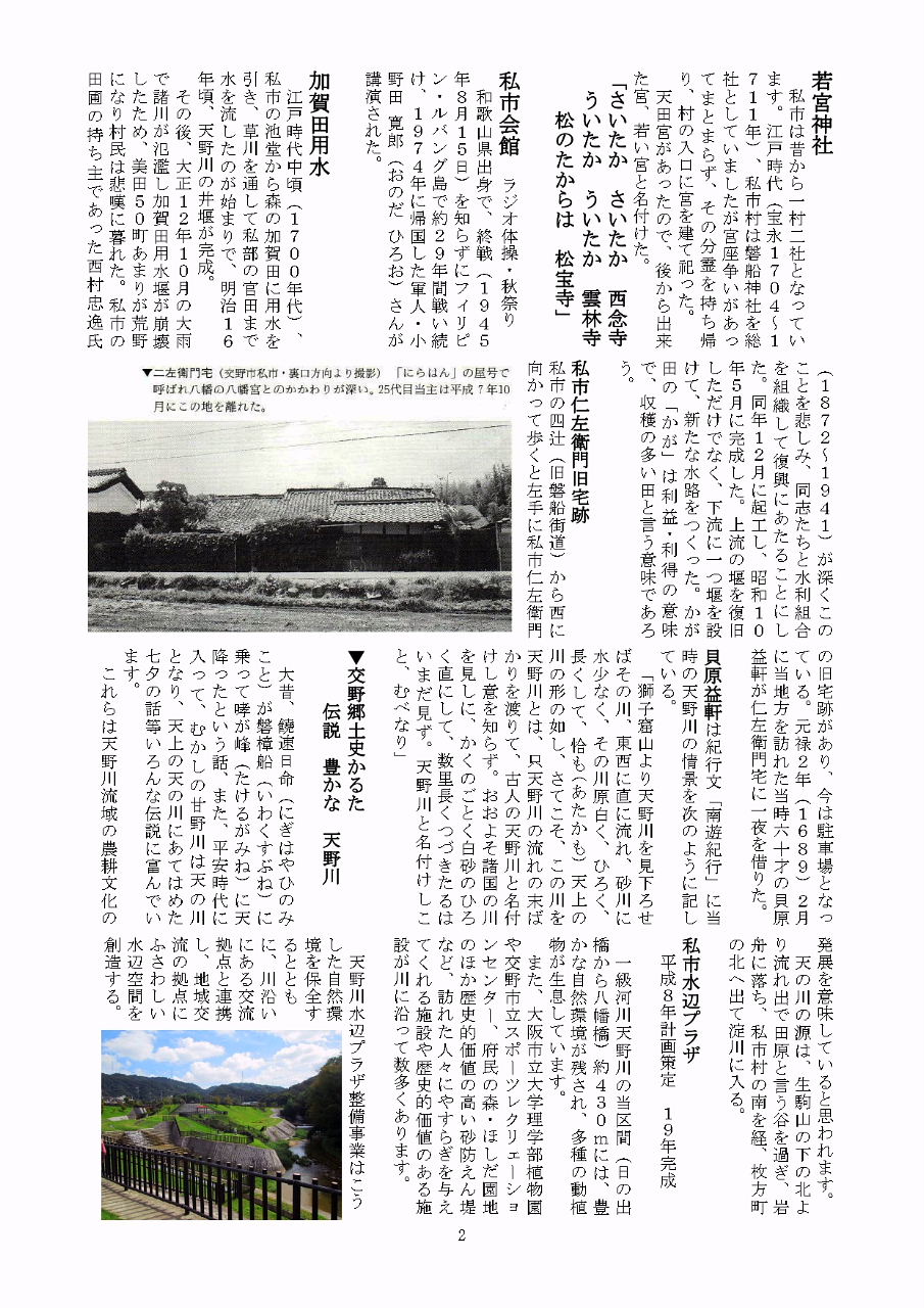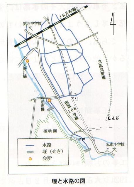 ![]() 加賀田用水の私市橋付近の堰 (天野川の右岸) |