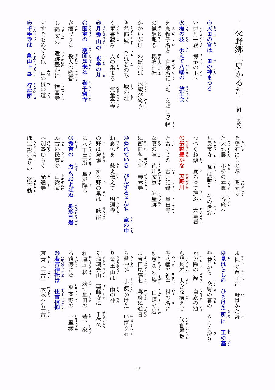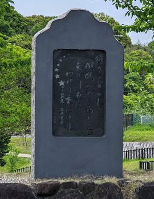 ![]() ・和歌 狩り暮らし棚機女(たなばたつめ)に宿借らむ 天の川原に我は来にけり ・歌人 古今和歌集 伊勢物語 在原業平 ・歌意 一日狩りをして日も暮れたので、織姫さまに宿を借りよう。折角、七夕で有名な天の川原に来たのだから。 ・揮豪 谷井昭雄氏(元松下電器産業株式会社 (現パナソニック株式会社)社長) ・建立 2007年5月26日 天野川をきれいにする会 「解説」 この和歌は、惟喬親王と渚の院で花見をした後、天の川に来て詠った和歌で、1200年前、平安時代の京都の貴族の間で、交野が原が、七夕伝説の里であると知られるようになるきっかけとなりました |