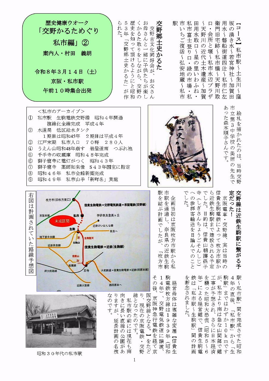 ![]() 3/14、歴史健康ウォークのご案内行程地図 |