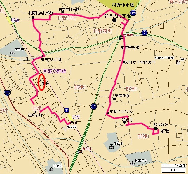 この辻から南へ郡津の町を通って東高野街道へ出ました