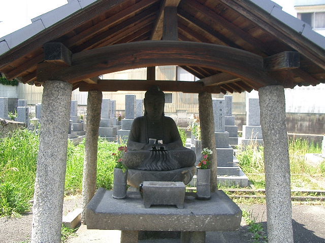 その中に、肉彫りで阿弥陀如来坐像が彫られている |