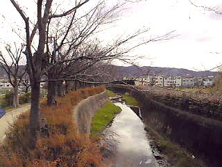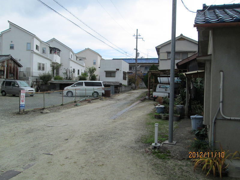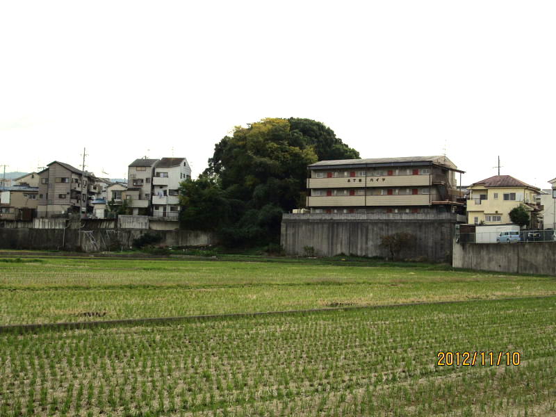 | 郡津駅前から、極楽寺、丸山古墳などを見学後、東に出て、東高野街道に入る、交野女子学園の裏手付近には、「ものきき」「藪の下」などの地名が残っている。 | ||