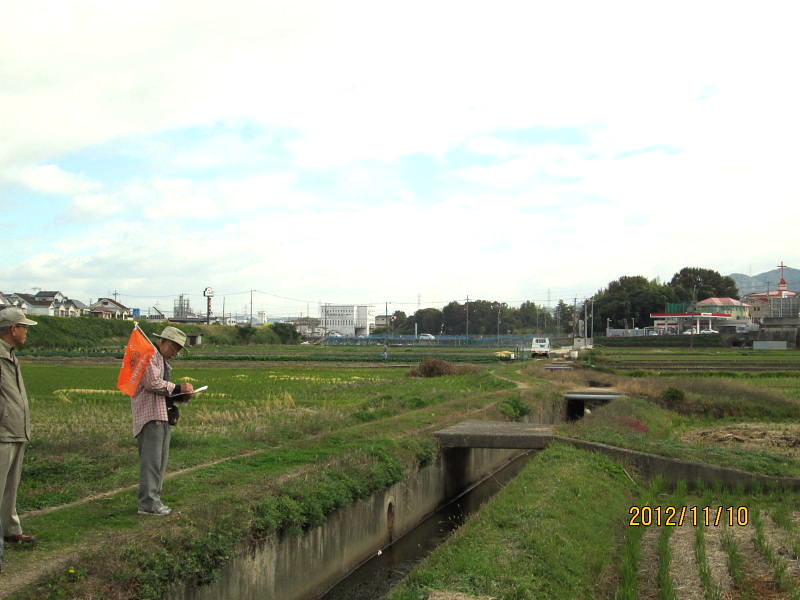 | 免除川の源は、白旗池→源氏滝→源氏池の南を西流→私部領→郡津の南を流れ→京阪交野線をくぐる→私部の山下川・にしゃベ川を合流した後、申田川と名を変え→枚方市浜橋付近で「北川」に合流→天野川に注ぐ。 かつては源氏の滝から機物神社・倉治へ流れていた。倉治村へ流れないように川筋を変えた。変えられる倉治・私部・郡津の田は他の犠牲は免れない。そこでその川筋の土地については当時の年貢が免除されたという。その後も洪水を繰り返し、江戸時代には堤の形や川筋が出来たようである。 ・交野線より西側:小字「河原」・・・低湿地地帯で氾濫が数多くあった。中でも明治元年(1868)の天野川の氾濫は被害甚大であった。「わんど」と称する西に迂回した部分に山下・にしゃべ川が合流する。この部分、東側の堤防が西側より高くなっており、川より東側が被害が少なくなるように工夫されていたようである。 ・昭和40年下流申田川を中心に大阪府住宅供給公社が宅地造成を計画。 ・昭和44年度に23000uに及ぶ大団地(松塚団地)が完成した。 ・申田川は改修されて「わんど」付近より天野川に合流するようになった。 |