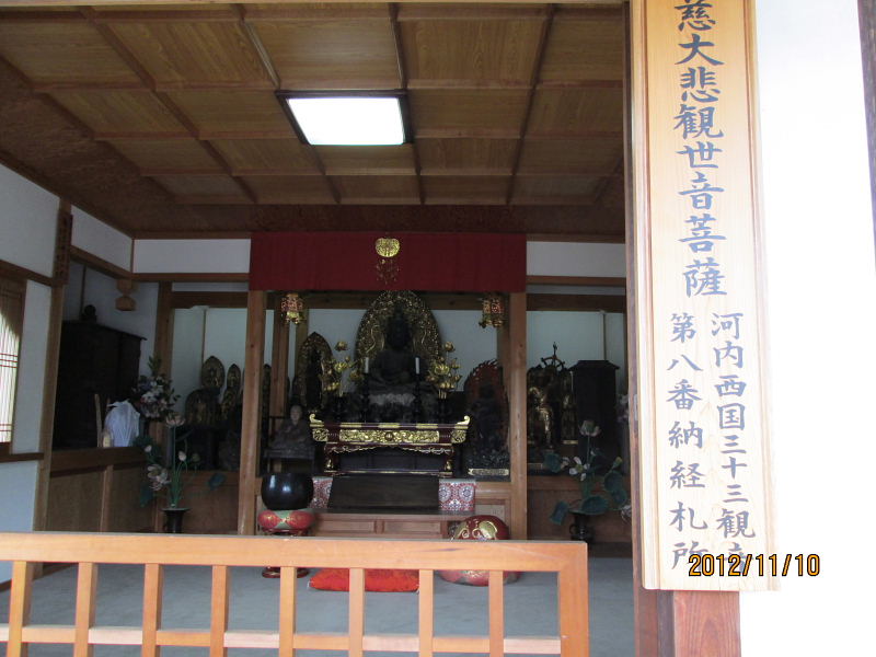![]() 現存する観音堂にも『河内西国三十三観音第八番納経札所」と 書かれた看板が掲げられている。 |