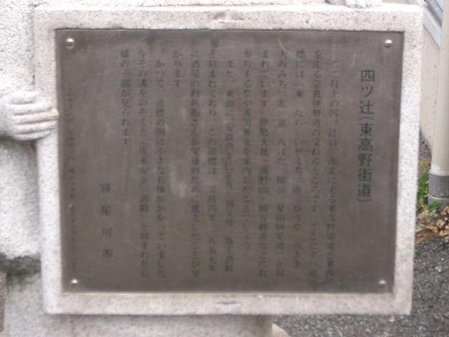 この碑の南北に続く道が東高野街道で昔の姿が偲ばれます。 |