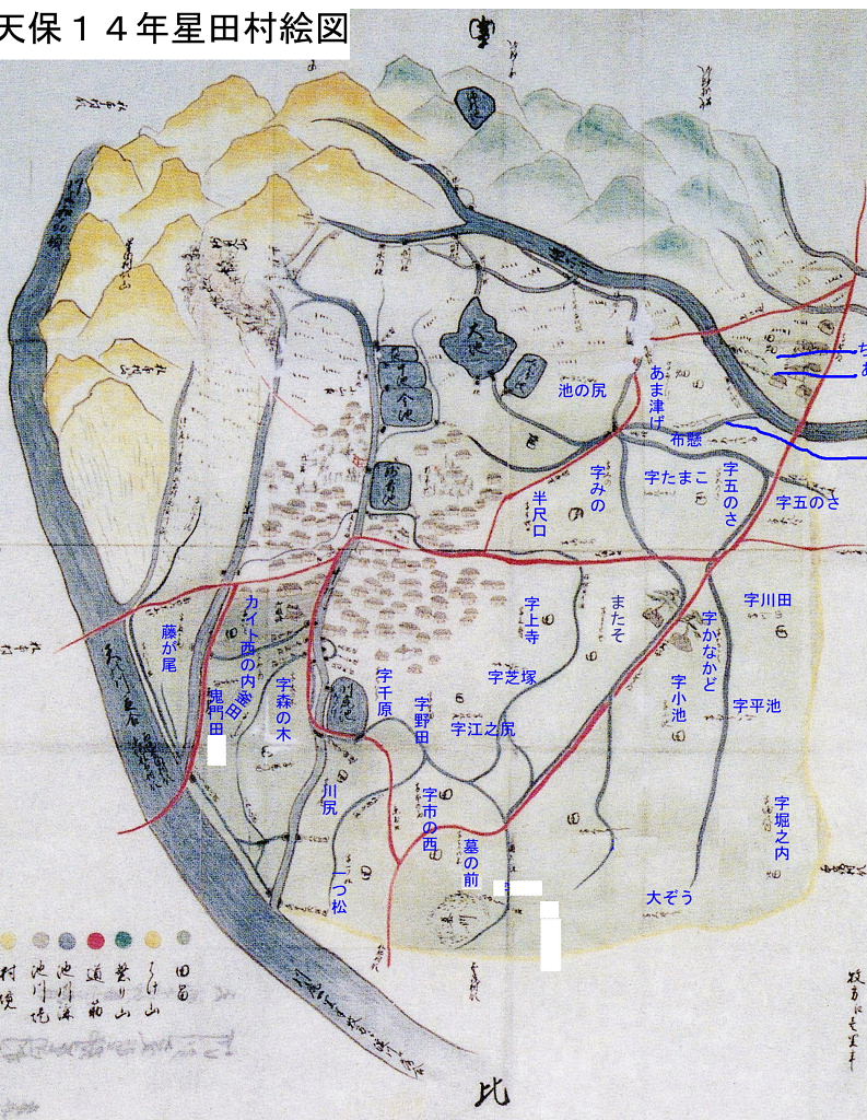 | 元禄10年星田村絵図(1697年) 一里塚が描かれている | ||||||
