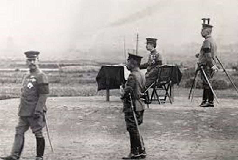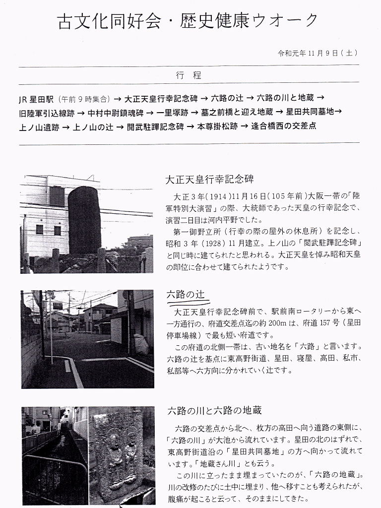 | 星田の第一御野立所「大正天皇行幸記念碑」から、上ノ山の第二御野立所「閲武駐蹕記念碑」のところへ移られて、天皇はここからも陸軍特別大演習の状況を統監された。この演習は明治25年から昭和11年迄(45年間)年1回行われ、両軍に分かれての大規模な模擬戦|ま、天皇が審判長を務められた。この少し前に日本は、第一次世界大戦に参戦したこともあり、白熱した演習となった。 | ||||||||||||