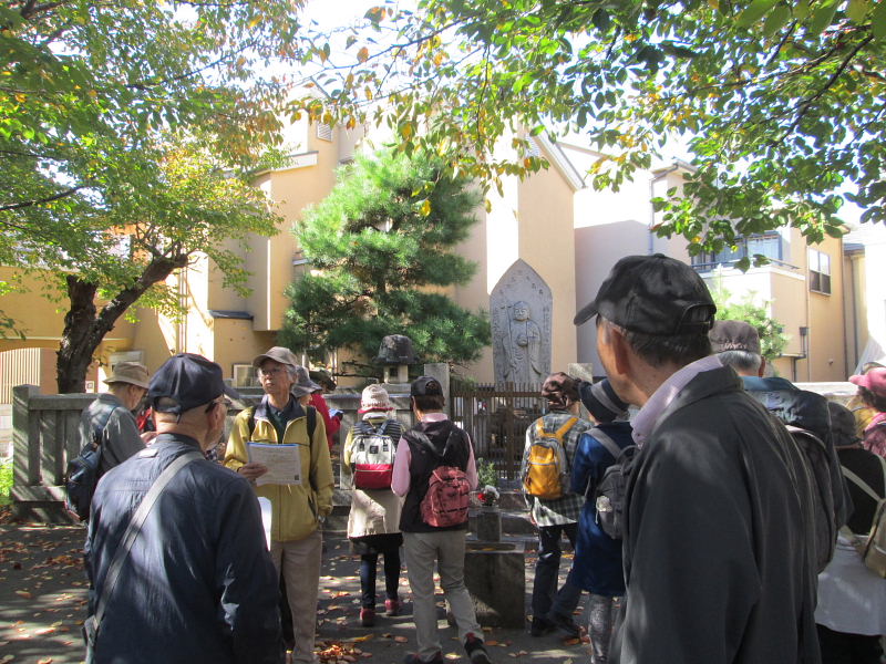 | 墓之前橋から北は、府道20号(枚方・富田林・泉佐野線で東高野街道のバイパス)と交わります。元の街道は東側の工場の敷地内に入って行ったのが、工場建設で無くなったのです。府道の西に「新仏道じるべ地蔵」があるが、元は東側の工場内で、元の街道の辻に立っていたのです。舟形の石に地蔵菩薩の立像は、美いヽ石仏です。 | |||||||||||||||||||||||||||