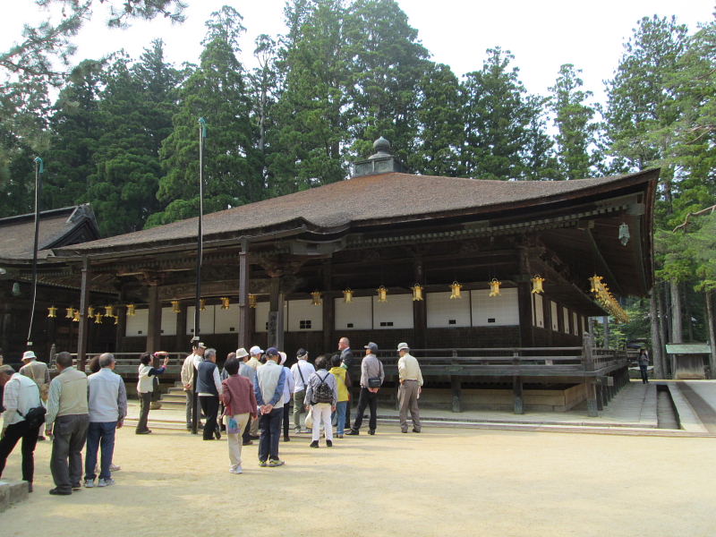 | 交野古文化同好会の「世界遺産 高野山バスツアー」、役員の皆様、ご参加いただいた会員の皆様のご支援・ご協力のお陰で無事、事故もなく開催出来ましたことを心より感謝申し上げます。 今回のバス旅行は、天候と高野山公認ガイドさんに恵まれまして、大変すばらしい旅行となり、主催者側としましてホッと胸をなでおろしている所です。 交野を定刻9時に出発。車内では、高尾さんより、「弘法大師と交野の関わり」のお話をして頂き、その後「歴史ヒストリヤ高野山物語」などのDVDを観賞。高野山へ登るまでに昼食を車内で済ませて、中の橋駐車場で高野山公認ガイドの林さんと落合、早速、奥の院へと案内していただきました。 ガイドの林さんには大きな声で大変詳しく説明いただき、テキパキと案内していただいたお陰で、予定通り、奥の院→金剛峯寺→根本大塔→金堂→三鈷の松→御影堂などを廻り、午後5時45分頃交野へ帰着いたしました。 参加された方々から、「何度も高野山へ来ているが、こんなに丁寧なガイドは初めてです。詳しくガイドいただき大変良かったです。」「ガイドさんの説明が良く、なるほどということばかり、大変勉強になりました。」「天候も良く気持ちよく参加でき、最高のバスツアーでした。お世話くださり有難うございました。」など大好評でした。 今後の課題としては、行程は出来る限り余裕を持てるように、平日で行き先によっては出発時間を30分くらい早める必要があるようです。 写真の撮影、高尾さんに御協力を頂き誠に有難うございました。 ※本ホームページを記載するにあたり、 紀伊山地の霊場と参詣道・高野山のパンフレット・チラシ、及び下記のHP、WEB記事など参考に作成させていただきました。記して感謝申し上げます。 高野山の魅力ホームページ、奥の院をかなり完全ガイド、金剛峯寺公式HP、高野山町HP、和歌山県庁HPなど |