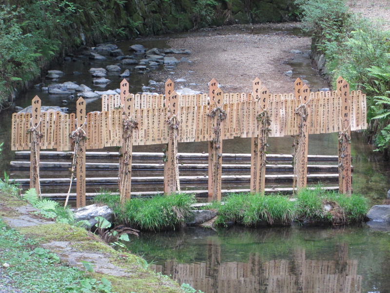 ![]() 玉川に沢山の十字の形をした卒塔婆 水の事故で亡くなった人やお産で亡くなった人を供養したもの |