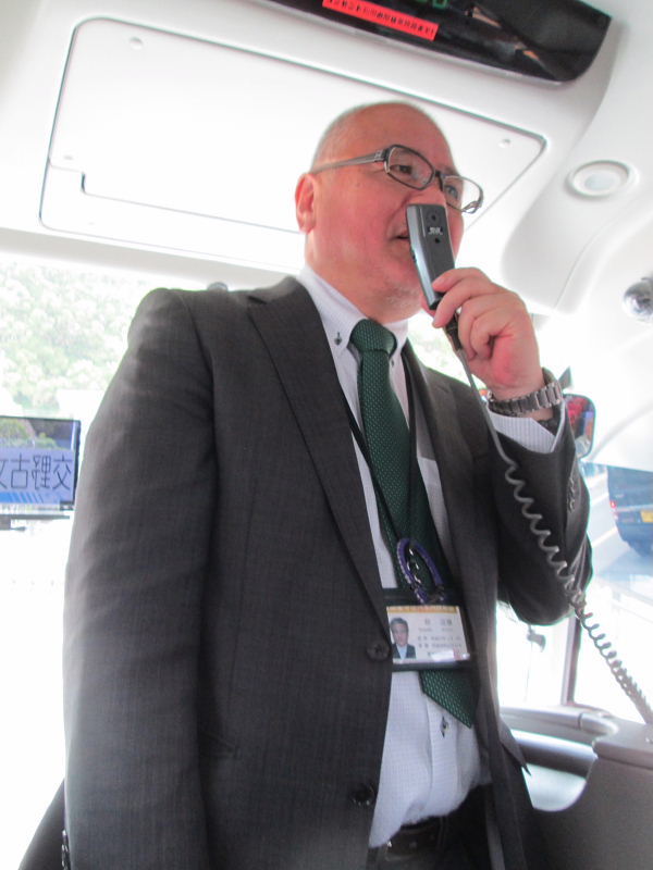 ![]() バスに乗車、金剛峯寺までの町内の案内もお願いする |