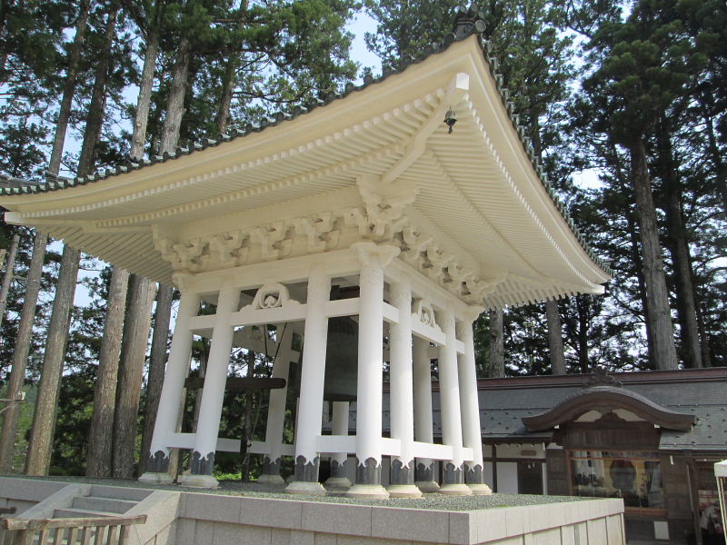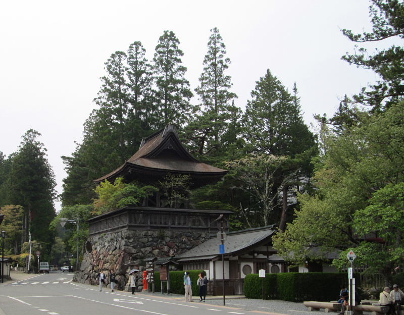 ![]() 金剛峯寺に隣接している六時の鐘 午前6時から午後10時まで、偶数時に打たれ、一日に9度荘厳な響きを全山に伝えている。 元和4年(1618)福島正則が亡母の追善に建立、その後焼失したが、 現在の鐘楼は天保6年(1835)に再建されたもの。 |