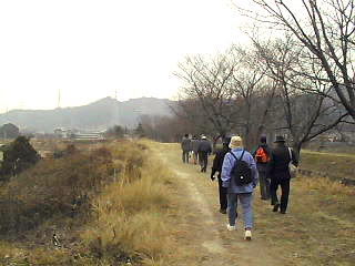 2003.2.8(土)、参加者は、15名。 いつものメンバーに、お隣の枚方市から元気な方がお見えになった。2002.10.2発売の『WALK関西版秋冬号』の関西ウォーキング団体・歩く会のイベントリポートとして交野歴史ウォークの活動が紹介され、その記事を見られて、交野の歴史を勉強したいと参加された。誠にありがたいことである。