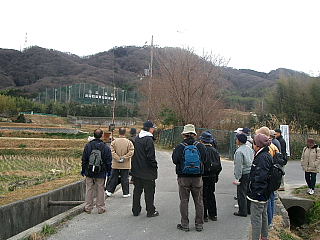 時間も11時半を過ぎ、歴史民俗資料室を出たところで、自由解散となり、帰りは三々五々大仏道を通り、交野小学校へと出て交野ドームに到着。皆さん、お疲れ様でした。 次回は、3月12日(土)、交野ドームから森、私市、星田を歩く予定です。 |