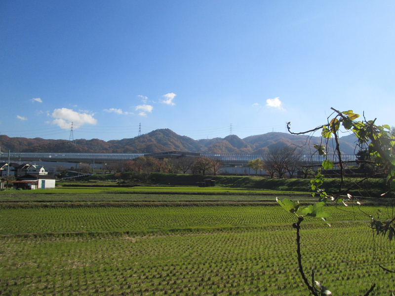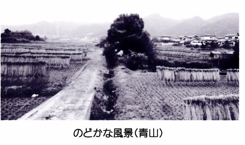 | 府道久御山線を北へと歩き、青山から神宮寺方面へと通じていた道路が写っている場所で、 「のどかな風景写真(青山)」を手に、「腰痛地蔵」のお話を詳しく聞きました。 |