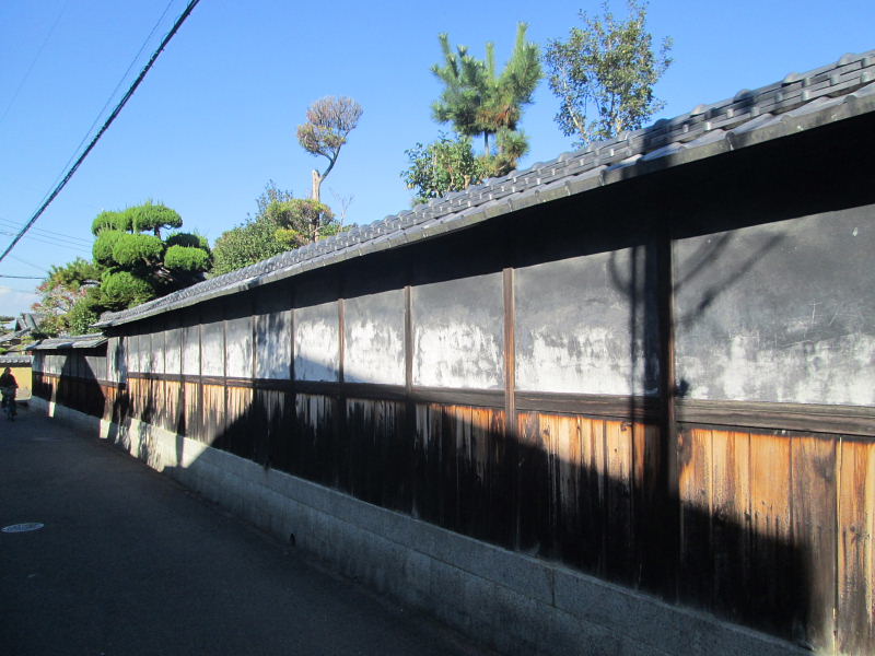 | 倉治の静かな町並み 板塀や白壁の昔を偲ばせる建物があちこちに建っており、 道路は遠見遮断で一度通っても、同じ道を通るのは難しい。 |