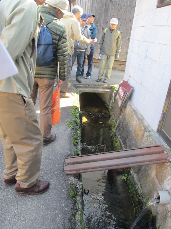 | 賽ノ神から北へ行き、少し右へと曲がり左へ真っすぐ行くと石橋があり、その東側に「仁平川の洗濯場」がある。この洗濯場の西側にある家の屋号が「仁平」といい、流れる小川が仁平川という。 「この洗濯場は、村の人々の語らいの場であり、コミュニケーションの場であった。家で親夫婦、年寄りが昼寝をしている間にそっと洗濯にくるのが仁平川の洗濯場だった」と平田さんは説明された。 ウォーク当日は大物ごみの収集日で集積場となって沢山の物が集められていた。普段は下記の写真の通りです。 |