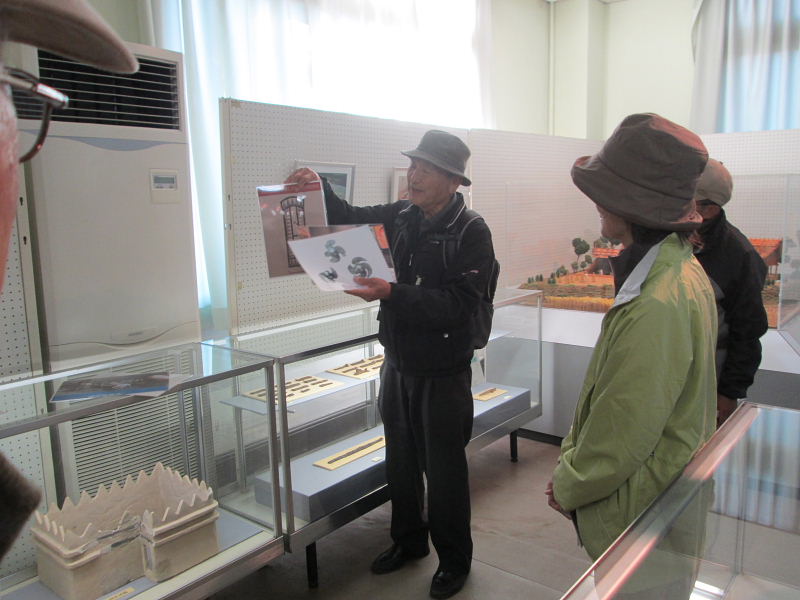 | 予定通り午前11時半、交野市歴史民俗資料室に到着して、 常設展と特別展(交野の鬼瓦)について、高尾さんより詳しく説明頂きました。 |