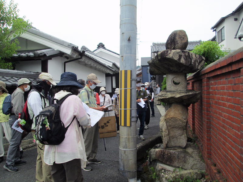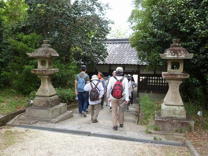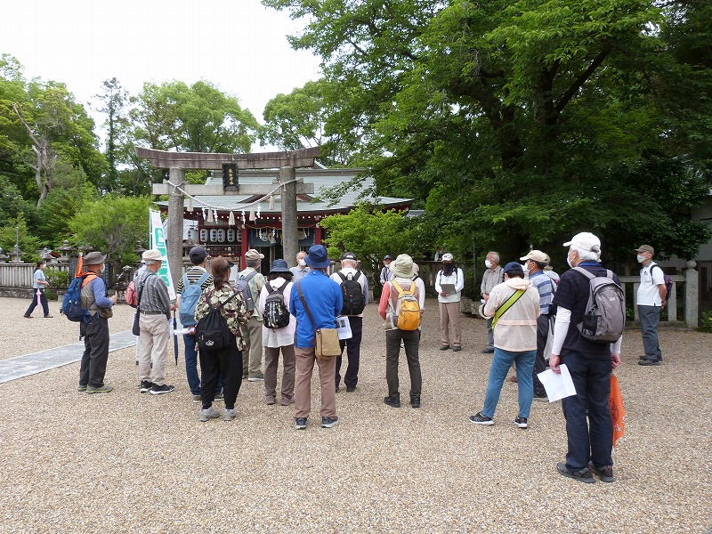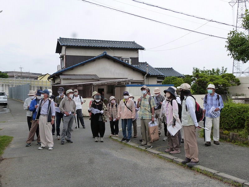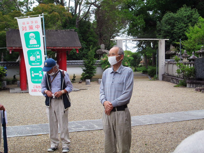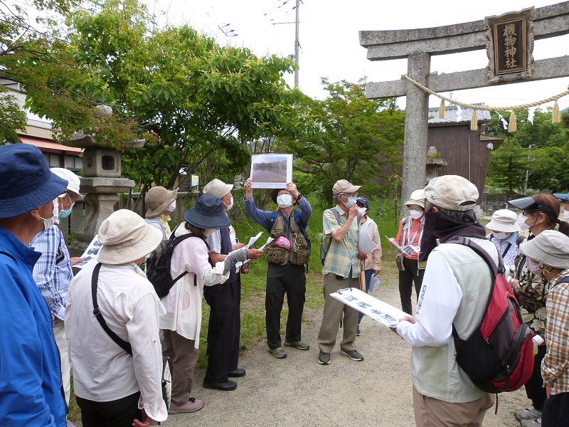| 日時 : 2022年6月11日(土) 午前9時 交野ドーム集合 参加者 23名 行程 : 交野ドーム~いきいきランド広場(午前時集合) → 旧地名「有池」の北西隅 → 機物神社の旧参道口 →旧鳥居 → 機物神社 → 機物神社 西の鳥居 → かご地跡の石碑 → 二平川の洗場 → 善通寺 →環濠集落 → 光明院 → 加地邸 → 二月堂燈籠 → 教育文化会館 → 歴史民俗資料展示室 12時解散 |