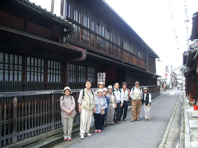 島原・揚屋「角屋」前で勢ぞろい! 江戸時代の揚屋建築では日本唯一のもので重要文化財に指定されている |