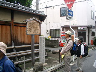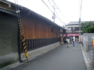 昼食後、かって平安京の朱雀大路であった千本通を南下、京都市中央青果卸市場を通り過ぎ、壬生寺から南へ約1キロ、15分ぐらいで島原の西門に到着。