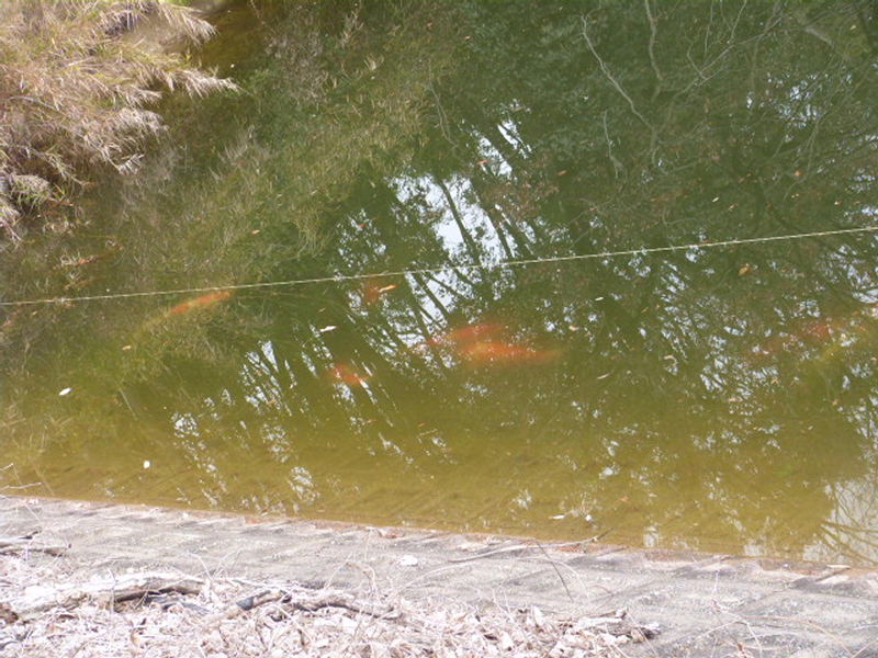 ![]() 堂池で養殖されている大きな緋鯉 |