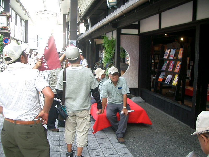 ![]() 長浜観光ボランタリガイドの岩越さん 名産品の浜ちりめんや仏壇、鉄道のお話をユーモアたっぷりに解説いただきました |