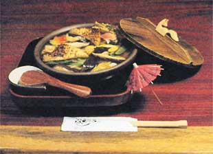 のっぺいうどん 湯葉や大きな椎茸などの具に、アンカケの汁をかけていただくうどん。生姜の風味が生きた、のっぺりとした汁が特徴。 地元では『うどん』をつけないで『のっぺい』と呼ばれる。 |