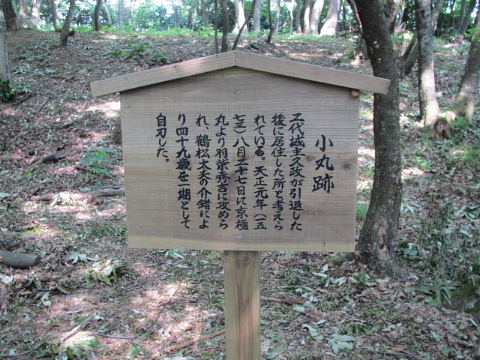 小丸跡 浅井久政が天正元年1573)8月27日に鶴松太夫の介錯により自刃した曲輪である。左右二段の曲輪からなる。 ![]() |