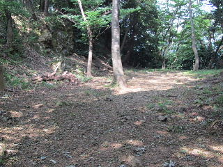 大堀切跡 本丸跡の北にある大規模な堀跡。番所跡から本丸跡までとその上を区切るためのものである。 ![]() |