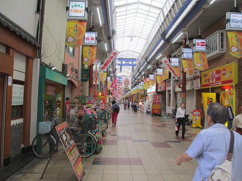 | 大阪天満宮で下車、天神橋筋商店街を北へ、寺町通りを西へ。 |