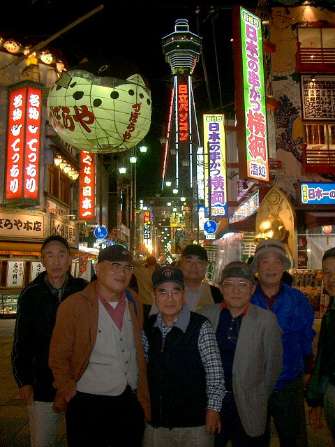 | 新世界のネオンと通天閣をバックに記念撮影 | |||||||||||||||||||||||||||||||||||