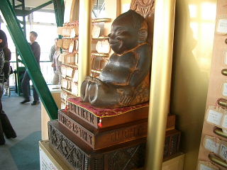 | 幸運の神様・ビリケンさん(通天閣の最上階91mにある) ビリケンさんの足の裏を掻きながら願い事すると叶うと言う 次から次へと、願い事をする若い人で一杯だった! |